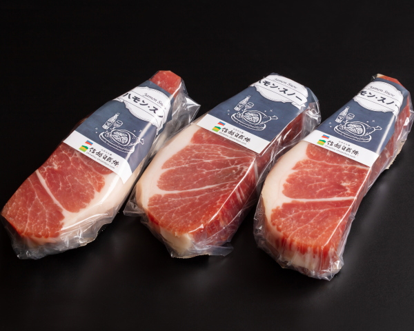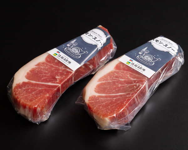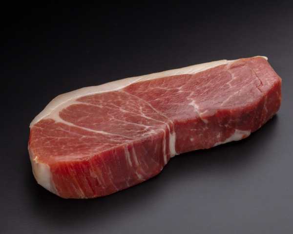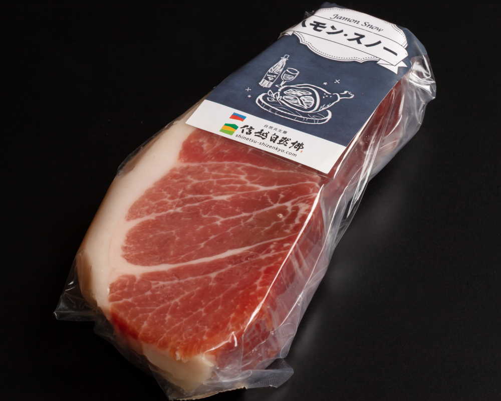 ブナ林に囲まれた雪深い山里で温度と湿度が保たれ、無添加で熟成された生ハムのブロック、トロ部位です
